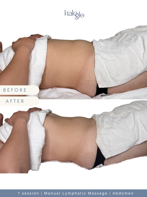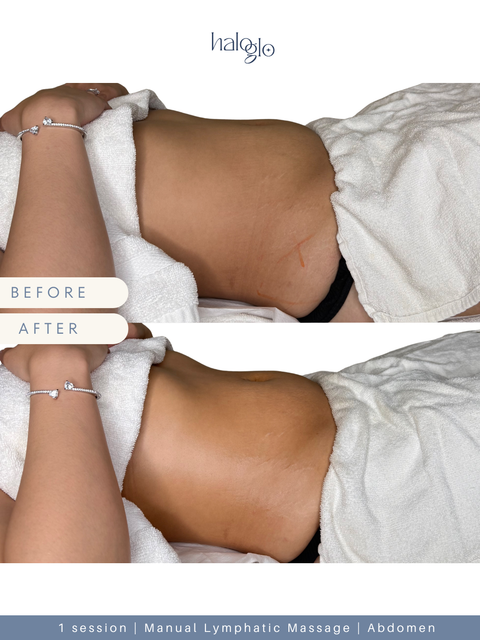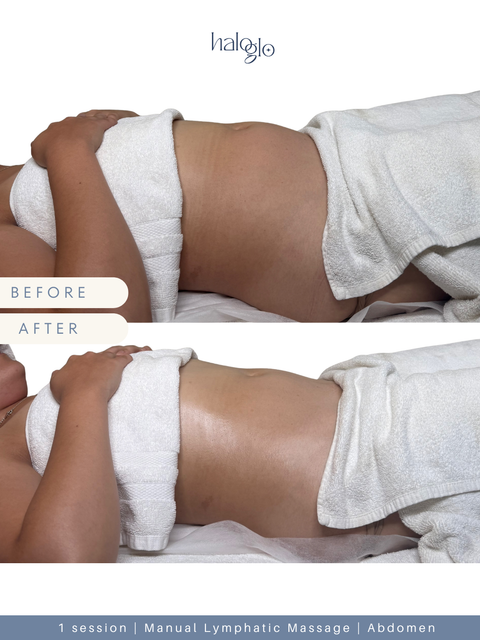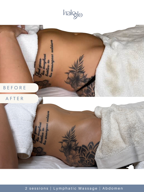 A focused manual lymphatic drainage session targeting the abdomen area to reduce bloating and support digestive wellness.